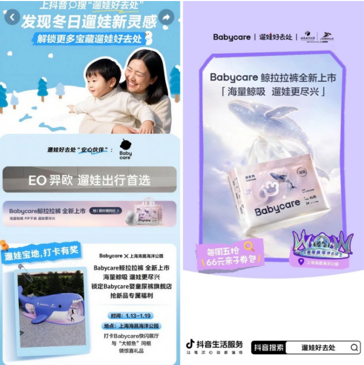 无独有偶,母婴商家Babycare则凭借纸尿裤的“鲸吸”性能,打透了亲子出行的新场景。